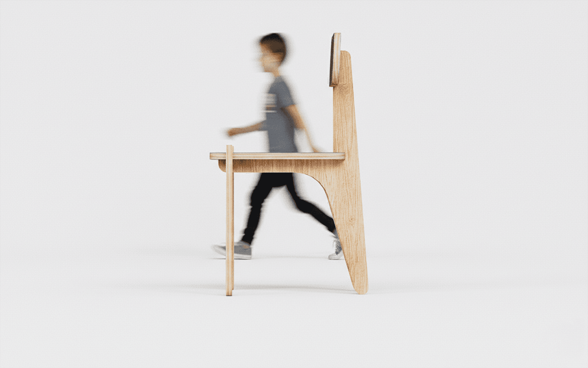 Punktem wyjścia były niewykorzystywane odpady ze sklejki, pozostające po rozkrojach na zabudowy kuchenne. Zadaniem projektowym było znalezienie sposobu na optymalizację tego procesu poprzez wpasowanie w puste przestrzenie płyty formatek nowego mebla. Projekt przeszedł 4 rygorystyczne iteracje, podczas których badana była stabilność konstrukcji, minimalizowana ilość niezbędnych części i modyfikacja geometrii elementów tak, aby możliwie najlepiej wypełniały luki w produkcyjnych planach cięcia.